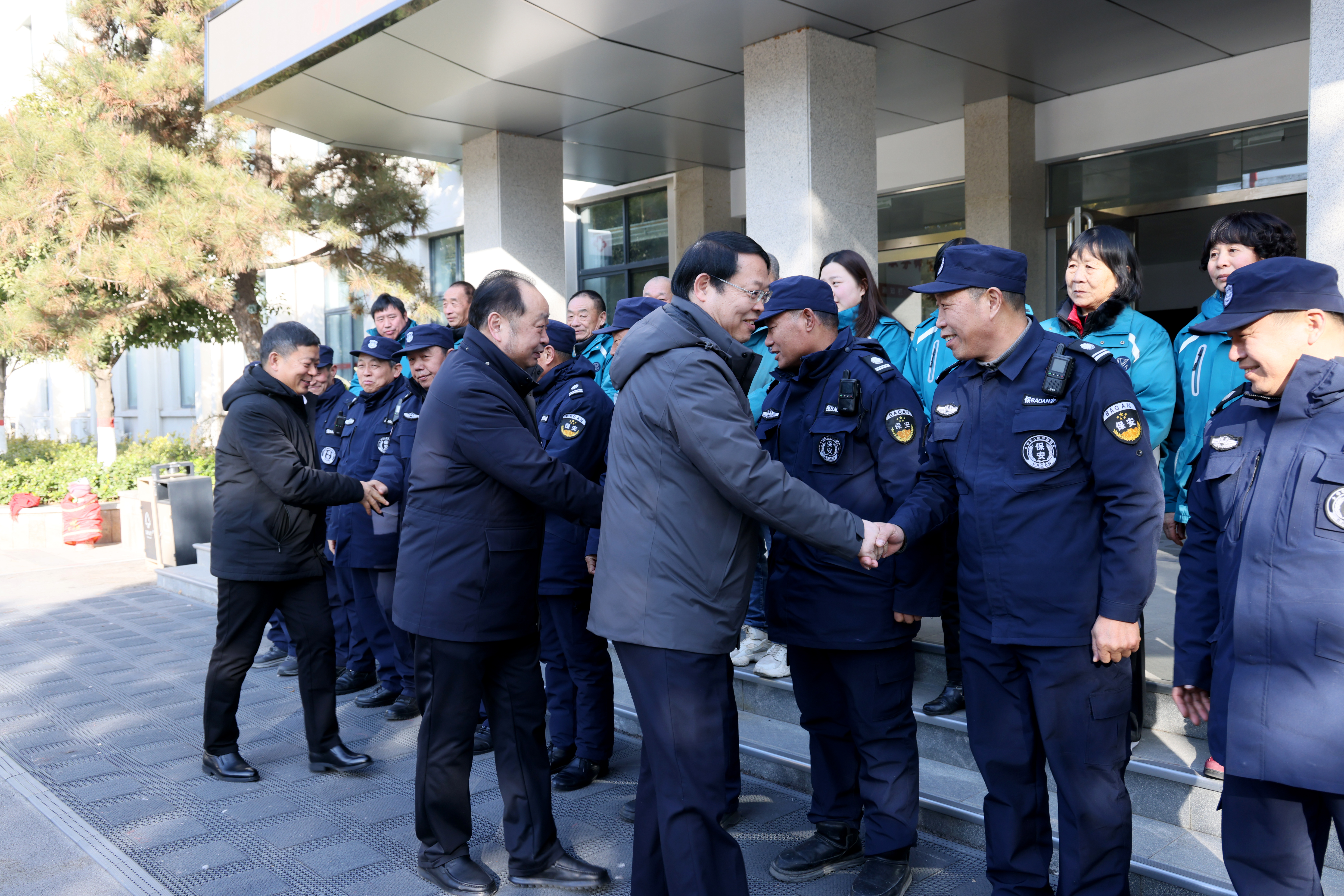 1月29日上午,新年第一天,闫俊山、薄新党一行到郑州校区开展慰问活动,向在校坚守岗位的值班工作人员、一线值守人员送上新春问候和诚挚祝福,并发放了新春慰问品。闫俊山、薄新党对过去一年来大家在各自岗位上的辛勤工作给予充分肯定和高度赞扬,对他们在春节假期中,舍小家、顾大家,坚守工作岗位,为维护校园安全做出的无私奉献表示衷心感谢,鼓励大家继续做好春节期间各项服务保障工作,确保校园安全度过平安、祥和的春节。