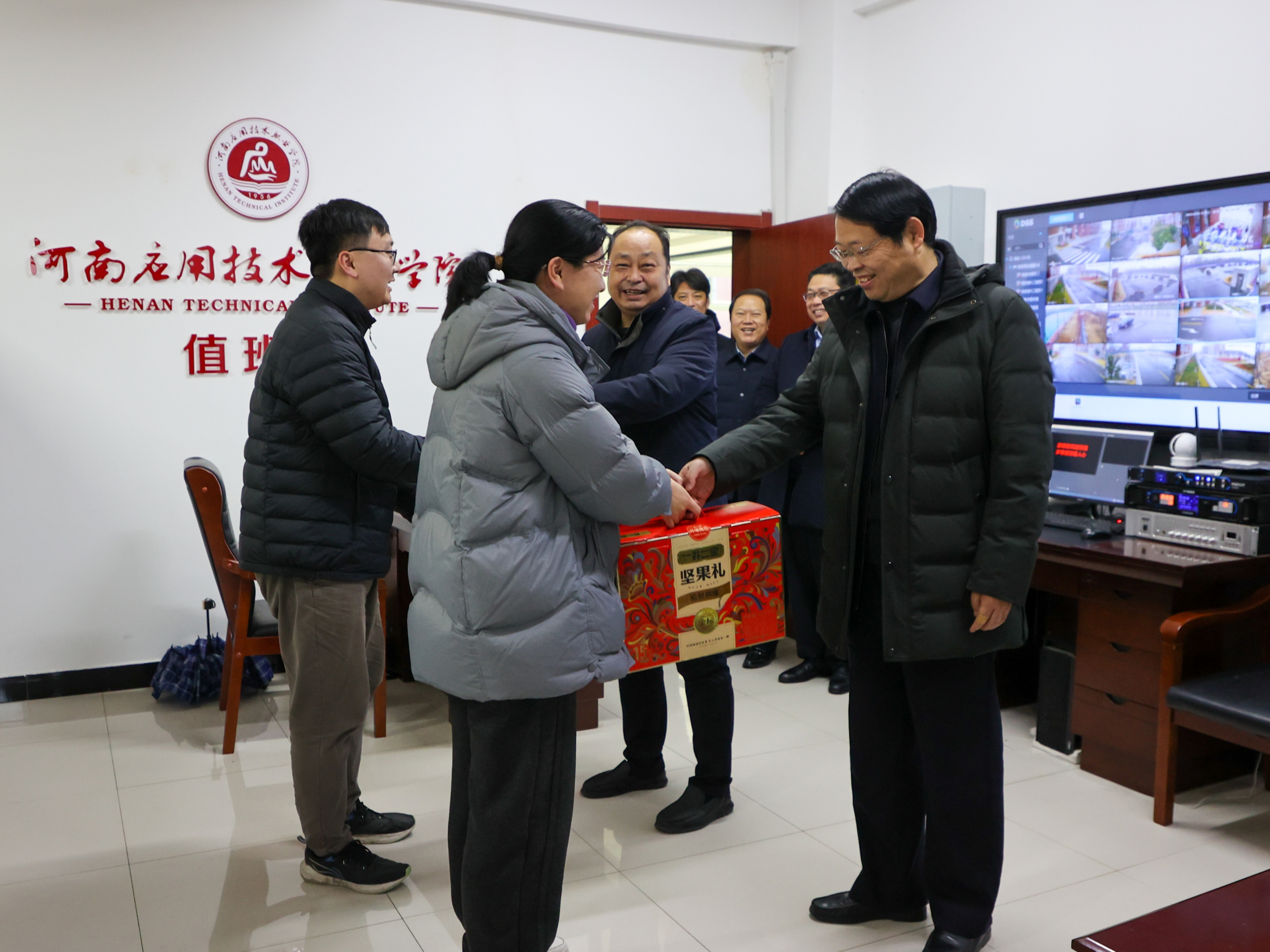 祥龙腾空辞旧岁,金蛇献瑞迎春来。乙巳蛇年春节前后,校党委书记闫俊山、校长薄新党亲切走访慰问春节期间坚守岗位的值班工作人员和一线值守人员,向大家送去节日问候和新年祝福。党委副书记、开封校区管委会主任魏新华,副校长刘振民、常新中陪同走访慰问。
