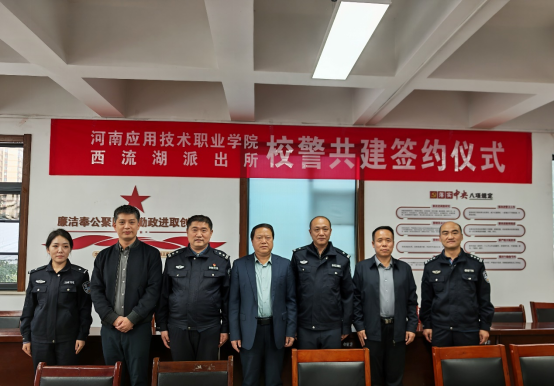 为强化校地联动、校警协同机制,筑牢校园安全防线。10月14日,我校与郑州市公安局中原分局西流湖派出所校警共建签约仪式在西流湖派出所举行。西流湖派出所所长杨忠印、教导员黄保华,我校副校长常新中出席仪式。双方相关部门负责人、工作人员参加。仪式由西流湖派出所指挥室主任郑梦雨主持。