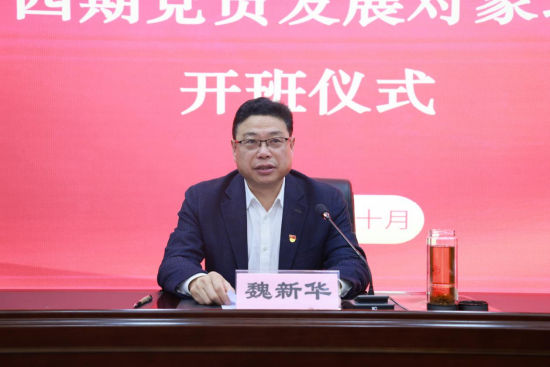 魏新华作动员讲话。他对参训学员提出三点要求:一是要深化思想认识,精准把握发展对象培训的核心要义和实践要求,深刻理解培训的重要意义与目标方向;二是要创新学习方法,综合运用多元学习手段,力求实现学习成果的显著提升与有效转化;三是要以“四个合格”为根本标尺,在持续的奋斗与实践中锤炼党性,努力锻造成为符合标准的合格党员。最后,他希望全体学院能珍惜此次培训机会,自觉继承和发扬党的光荣传统与优良作风,真正做到学思用贯通、知信行统一,始终坚定地听党话、跟党走,以积极饱满的姿态争取早日加入中国共产党,努力成为一名让组织放心、让群众满意的合格党员。