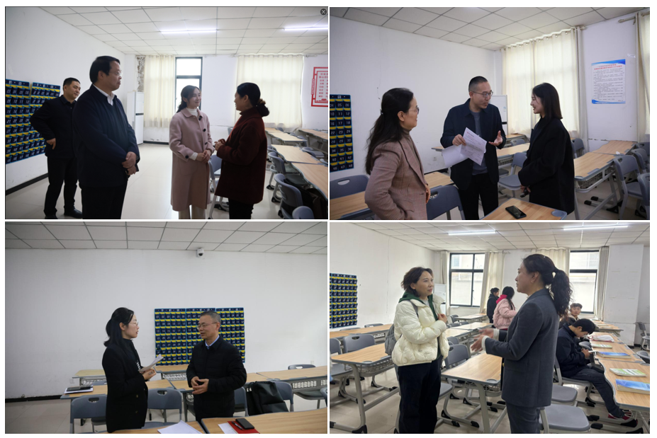 11月17日,省教育厅思政课“大听课、大调研”第四专家组一行5人,在组长安阳工学院纪委书记王红艳带领下莅临我校,开展听课调研与指导工作。校党委书记闫俊山,党委副书记、工会主席陈君丽,副校长黄振中及相关职能部门、马克思主义学院主要负责人陪同调研。