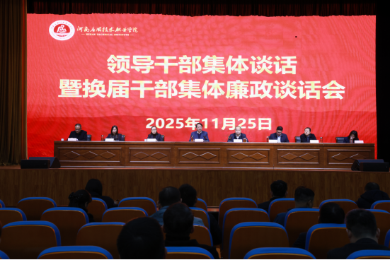 为深入贯彻落实全面从严治党战略方针,进一步加强干部队伍建设,增强领导干部廉洁自律意识和履职担当能力,2025年11月25日,学校召开领导干部集体谈话暨换届干部集体廉政谈话会,全体在校领导班子成员出席会议,全校中层以上干部参加会议。会议由校长薄新党主持。