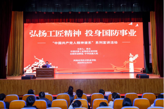 梁兵以“弘扬工匠精神 投身国防事业”为主题,结合自身在生产一线三十余年的奋斗历程,深刻阐释了劳动精神、劳模精神、工匠精神的历史底蕴与时代价值。他以自己练习操作“0.01秒精准控制”、钻研“高速加工”技术等实例激励青年学子要耐得住寂寞、经得起考验,将精益求精内化为职业习惯和人生态度,奋勇建功新时代,在奋斗中彰显自身价值,在各自平凡的岗位上努力创造不平凡的业绩。