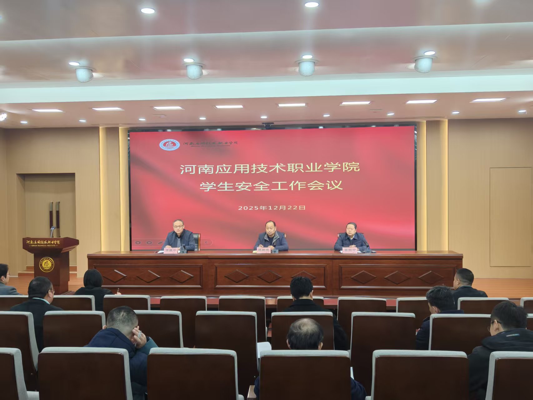 为深入贯彻全省教育系统安全稳定工作会议精神,并结合我校实际针对重要时间节点和学期末安全稳定工作要求,12月22日下午,我校召开2025年学生安全工作专题会议。校长薄新党,副校长常新中、黄振中出席会议,相关部门负责人,各二级学院党总支书记、副书记参加会议。会议由常新中主持。