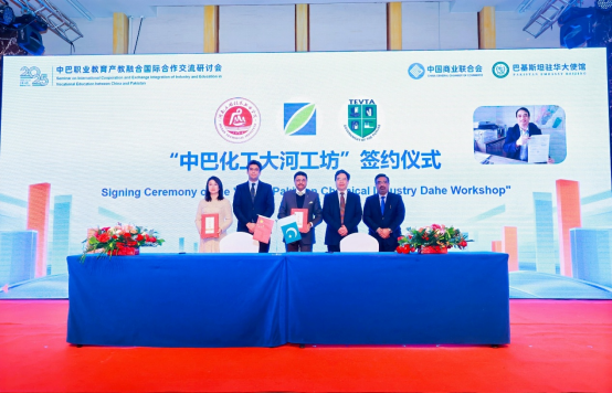 会上,与会各方围绕职业教育国际化发展展开深度对话与多视角研讨,进一步凝聚合作共识,共绘发展蓝图。我校与巴基斯坦方面就共建“中巴化工大河工坊”及精细化工技术专业标准开发与国际教学资源库建设,签署战略合作协议。