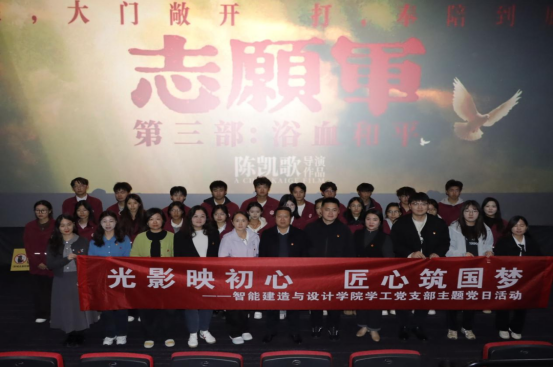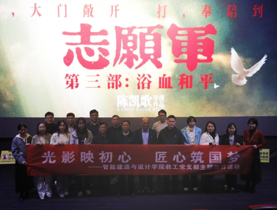 为深入推进党史学习教育走深走实,传承红色基因,厚植爱国情怀。2025年10月23日,智能建造与设计学院教工党支部联合学工党支部组织党员教师及部分学生代表,共同观看电影《志愿军:浴血和平》,以光影形式重温抗美援朝峥嵘历史,凝聚党员奋进力量。校党委委员、副校长常新中以普通党员身份参与本次活动。