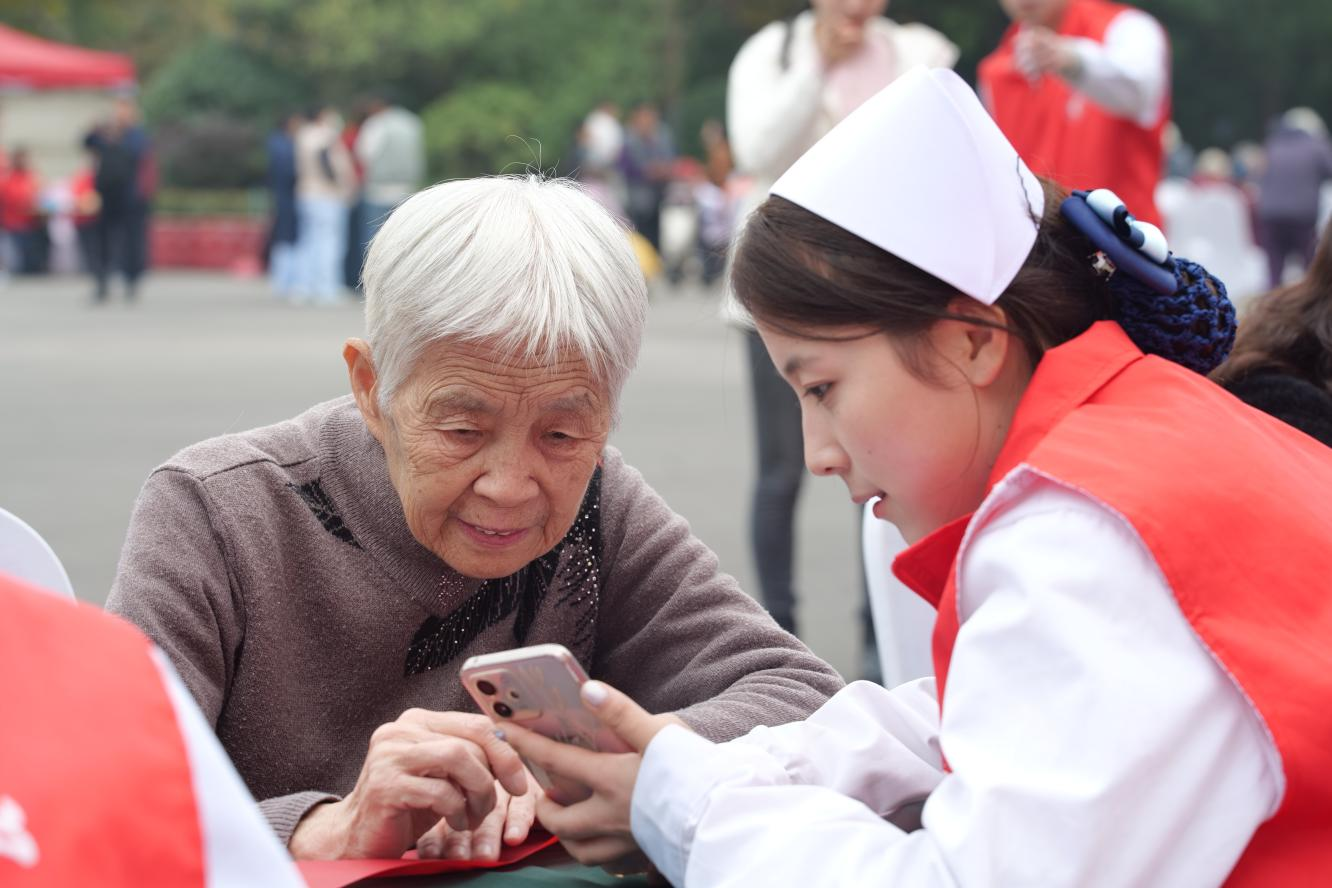 “桂香漫城添暖意,指尖传技润银铃”。10 月 28 日至 29 日重阳节来临之际,由河南省民政厅、河南省老龄办与河南广播电视台联合主办的第三届大象敬老节,分别在郑州市五一公园、河南省老年公寓温情启幕。康养护理学院师生志愿者组成的 “智慧助老服务队” 全程参与,以 “智慧银龄,数字助老” 为主题,手把手教老年朋友玩转智能手机,让科技红利跨越 “数字鸿沟”,为敬老节注入青春暖流。