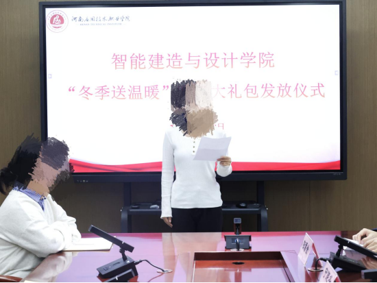 2025年12月8日,智能建造与设计学院于开封校区(北院)B316会议室举行“冬季送温暖”暖冬大礼包发放仪式。校党委委员、副校长常新中,智能建造与设计学院党总支书记宁晓冬、院长李勇、党总支副书记张蓄金出席会议,学院全体专职辅导员、受助学生参加仪式。仪式由宁晓冬主持。