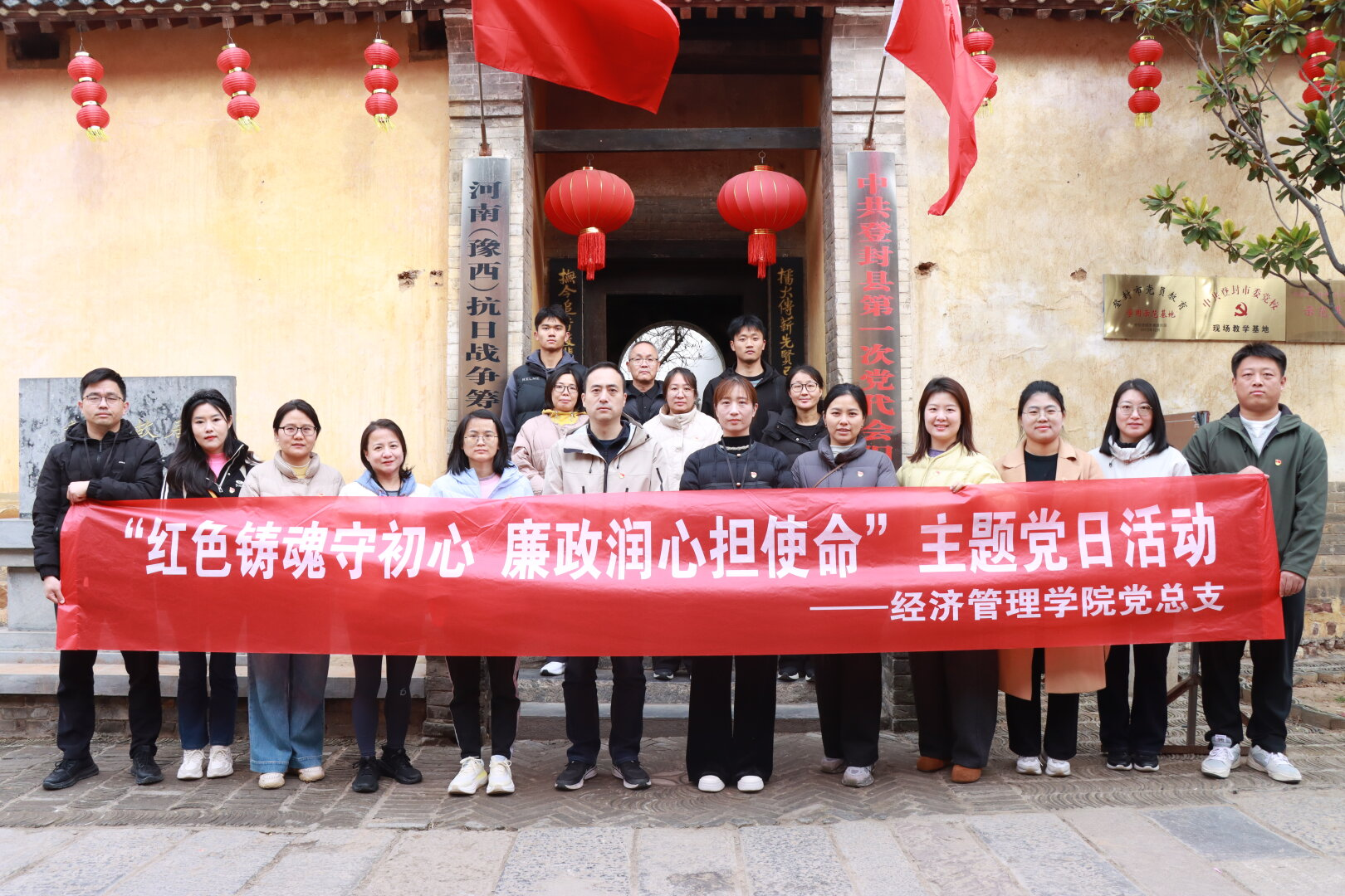 此次主题党日活动,以“实地走访+精神浸润”的方式,将抗日烽火的革命记忆、古今交融的文化底蕴与廉洁自律的价值引领深度串联,让全体党员在历史现场触摸初心、在精神共鸣中凝聚力量。党员们纷纷表示,将把此次学习的感悟转化为立足教育岗位的实际行动,以革命先辈为标尺,以红色精神为指引,在立德树人、学科建设的实践中践行使命,让红色基因在新时代人才培养的征程中持续焕发光彩。