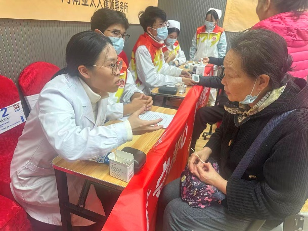 活动现场,党员师生志愿者们分工明确、热情服务,围绕健康保障和数字技能提升两大核心内容开展服务。志愿者们为到场老年人提供免费血压测量、血糖检测服务,同时,还针对老年人在慢性病管理、冬季养生等方面的疑问,进行一对一专业解答,提供科学实用的健康指导,得到老年朋友们的一致好评。
