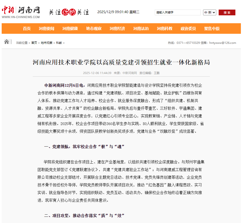 9001cc金沙以诚为本智能建造与设计学院坚持将党建引领作为校企合作的根本保障与动力源泉,通过构建“党建领航、项目攻坚、基地赋能、就业护航”四维协同育人体系,推动党建工作与人才培养、校企合作、就业服务深度融合,形成了“组织共建、机制共融、资源共享、人才共育”的校企融合新格局。学院先后与壹仟零壹艺、三好软件、宇通集团、建威工程等多家企业开展深度合作,以党建红心引领专业匠心,实现教育链、产业链、人才链与党建链有机衔接。2025年,校企合作项目带动360名学生参与实践、80人顺利就业,学生荣获国家级、省级技能大赛奖项十余项,师资团队获教学创新类奖项多项,党建与业务“双融双促”成效显著。