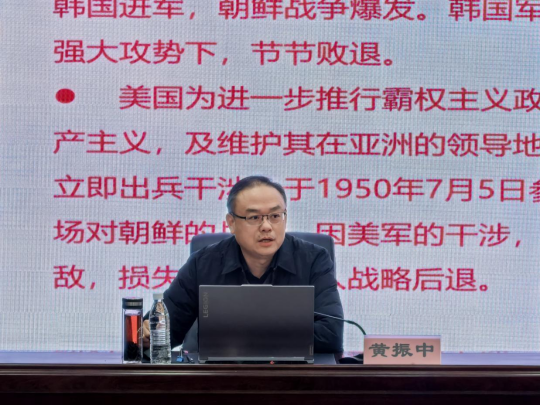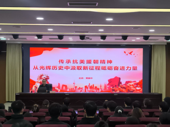 为深入传承红色基因,弘扬伟大抗美援朝精神,引导入党积极分子从党的光辉历史中汲取信仰力量,12月22日,副校长黄振中以“传承抗美援朝精神,从光辉历史中汲取新征程砥砺奋进力量”为主题,为人工智能与信息技术学院入党积极分子讲授了一堂内涵深刻、激励人心的专题党课。